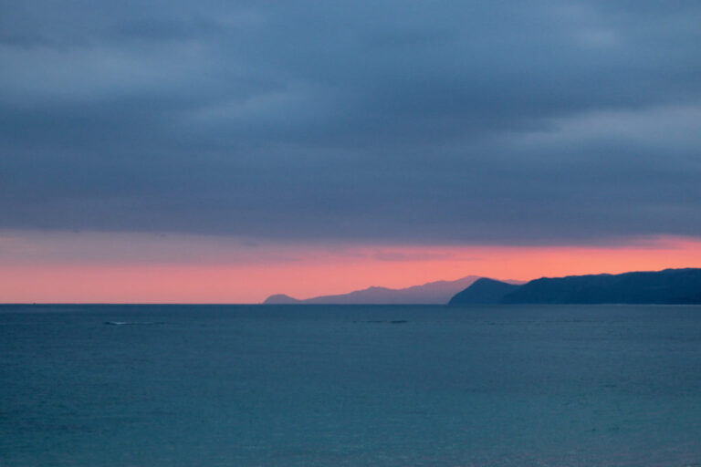 新月で真っ暗な島の海。 東シナ海の大荒れ