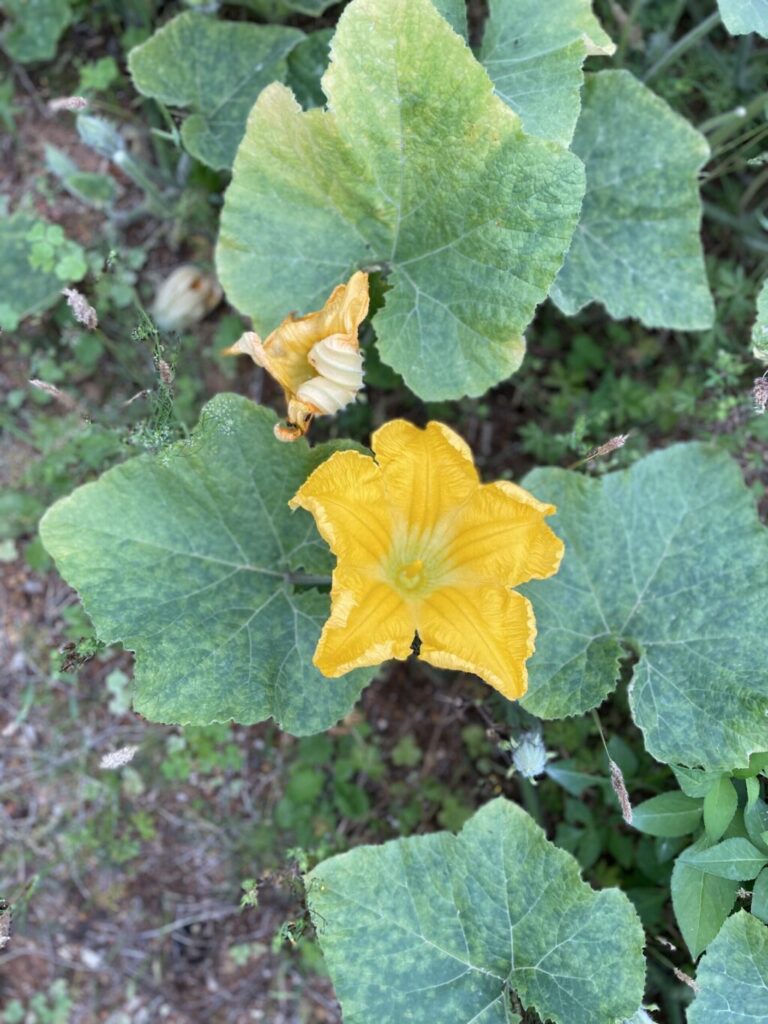 かぼちゃの種をまきました。 芽が出てふく